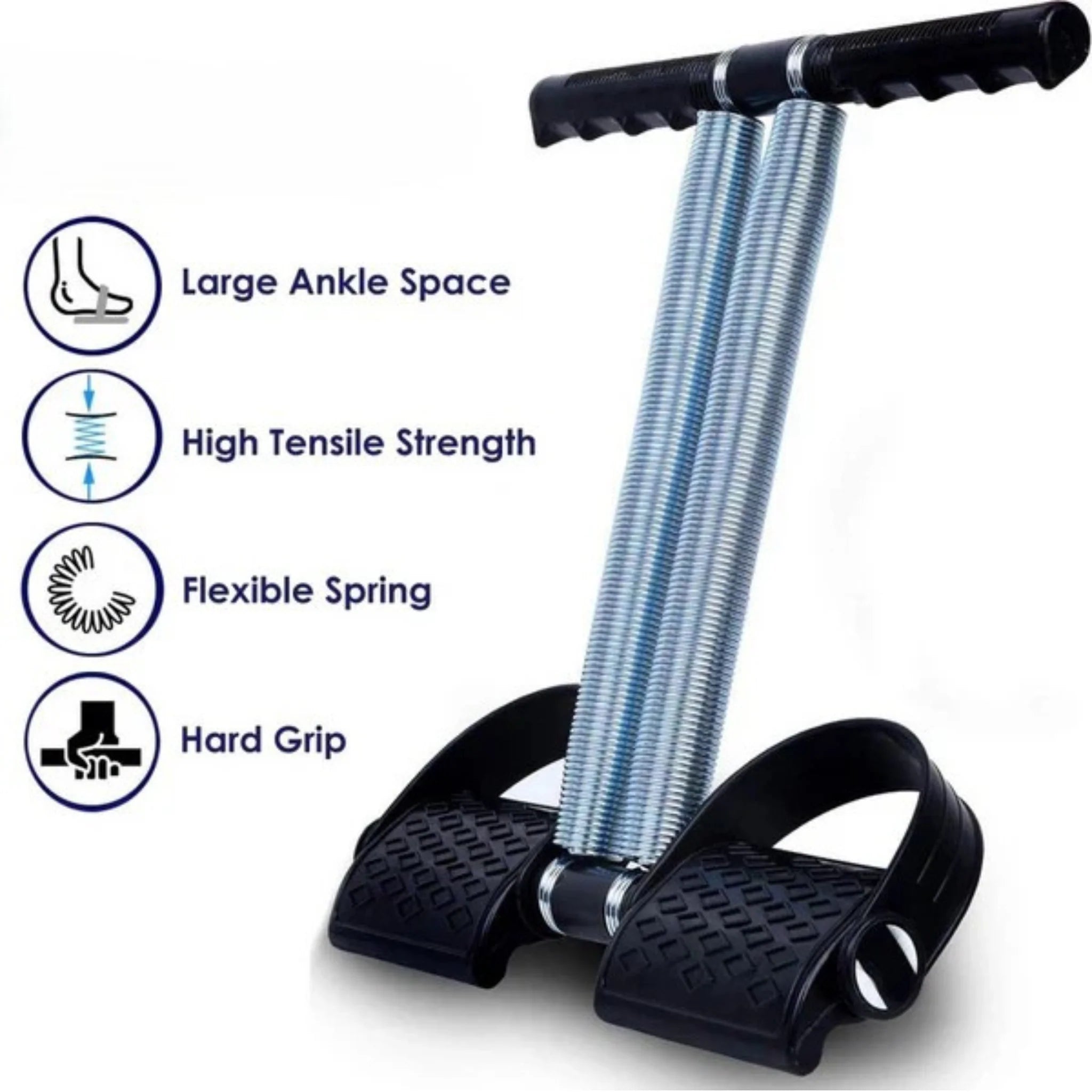- ✅ Premium & Durable Design: Features a double chrome steel spring for maximum resistance and long-lasting use. Comes with wide, contoured foot pedals and cushioned, non-slip handles for total comfort and safety.